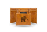 Show your team pride off every day when you carry the RICO tri-fold wallet. You can store your money, credit cards and important business cards in this laser engraved faux trifold wallet. The faux leather wallet holds 4 credit cards a side hidden pocket. It's laser engraved with the team logo.