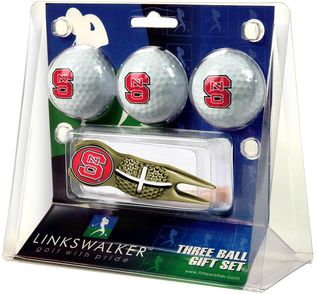 NC State Wolfpack Gold Crosshair Divot Tool 3 Ball Gift Pack