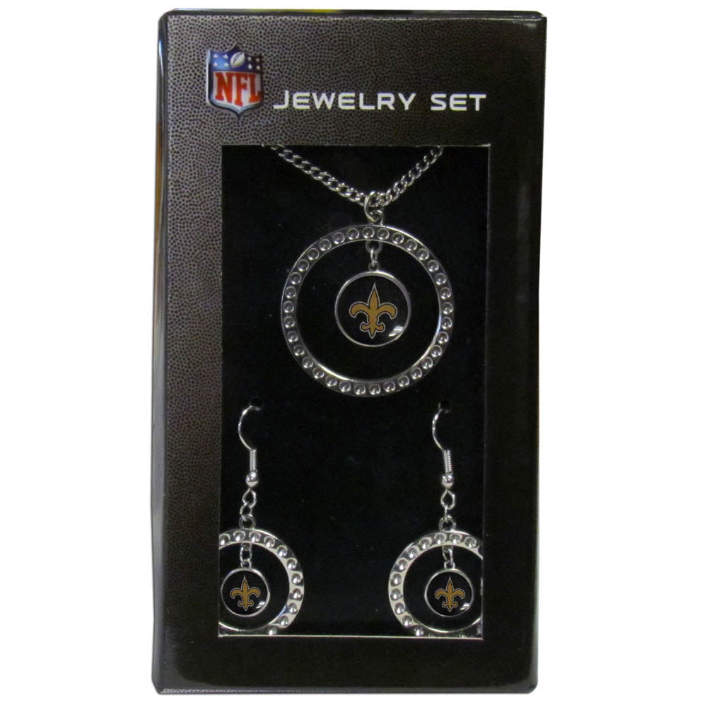 New Orleans Saints Rhinestone Hoop Jewelry Set