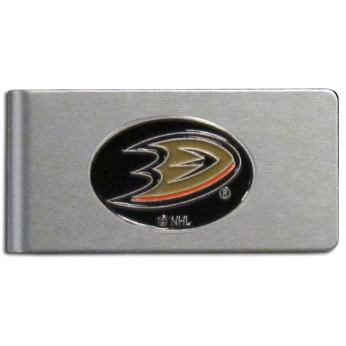 Our brushed metal money clip has classic style and functionality. The attractive clip features a metal Anaheim Ducks® emblem with expertly enameled detail