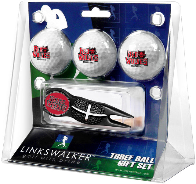 Arkansas State Red Wolves Black Crosshair Divot Tool 3 Ball Gift Pack - Black