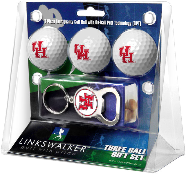 This combination gift pack includes featuring 3 collegiate logo'd LinksWalker ProVictory golf balls featuring On-Ball Putt Technology (OPT), paired with a LinksWalker Keychain Bottle Opener and 4 wooden golf tees as a bonus.