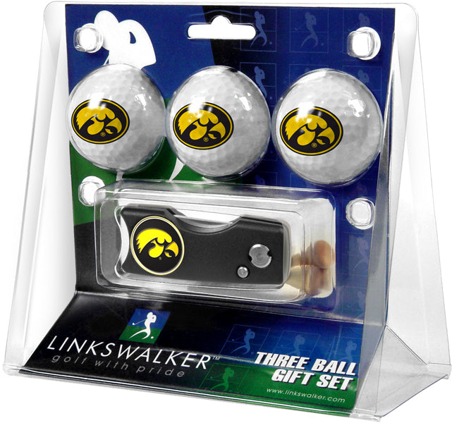 Iowa Hawkeyes Spring Action Divot Tool 3 Ball Gift Pack