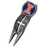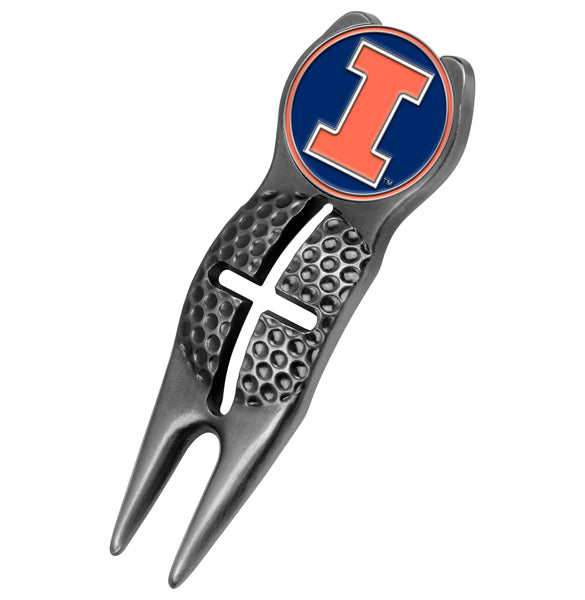 The Crosshairs Divot Tool by LinksWalker provides a solid metal construction with a unique spherical portion of the divot tool to draw lines on a golf ball. This helps with both putting and driving alignment. The top handle portion has a magnetic front that securely holds a removable high quality die-struck, enamel filled collegiate logo'd ball marker.