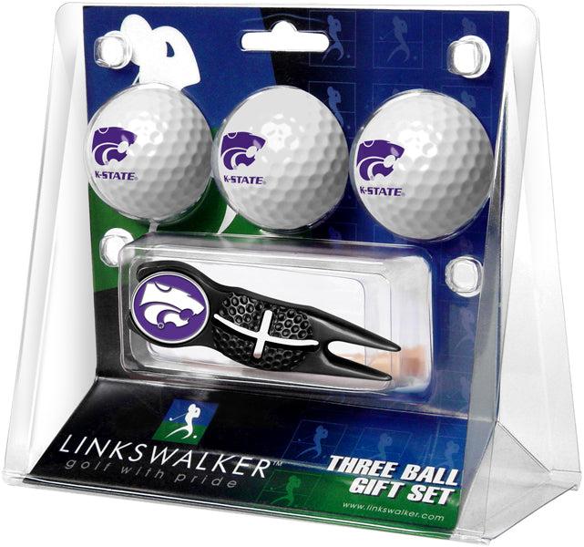 Kansas State Wildcats Black Crosshair Divot Tool 3 Ball Gift Pack