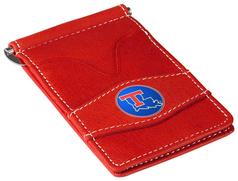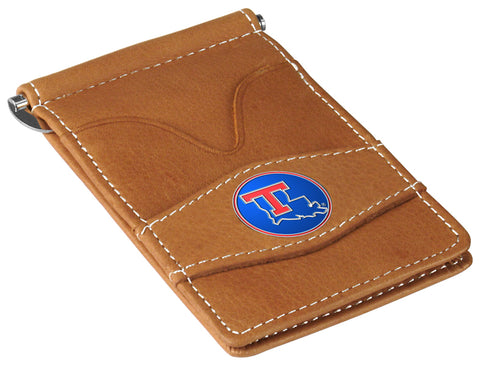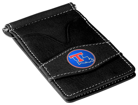 The Louisiana Tech Bulldogs Player's Wallet is available in an assortment of neutral and Louisiana Tech Bulldogs colors. Each one features contrast stitching and genuine leather giving it a soft velvet feel with your favorite Louisiana Tech Bulldogs's college logo prominently displayed on the exterior of the wallet. Each wallet features an exterior ID slot, 4 interior card slots and a swing bar bill clip. The Player's Wallet is a golf accessory you don't want to miss!