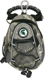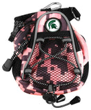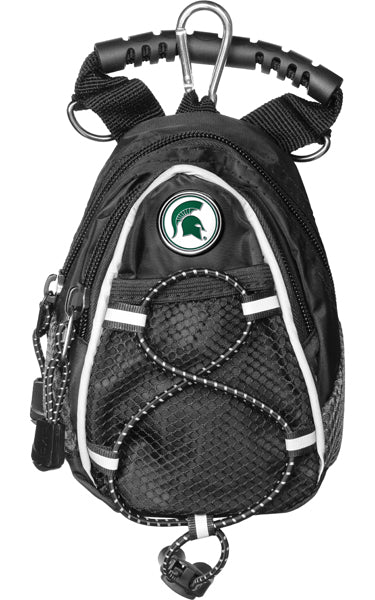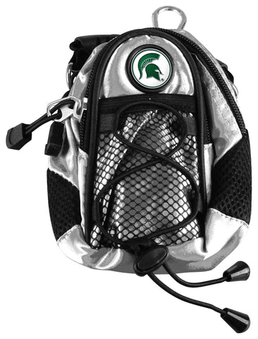 Show your Michigan State Spartans spirit with a compact carry-all for your golf accessories! Available in assorted colors, each Mini Day Pack prominently displays the college logo of your favorite Michigan State Spartans. It features 2-zippered compartments, a mesh front pocket and a laced bungee drawstring. The larger zippered pocket is lined with plush fabric to protect your valuables and has room to fit most range finders or up to a dozen golf balls. Includes a grab-n-go handle, a strap to wear it over the shoulder, a carabiner clip to easily attach it to your golf bag or wear it on your hip using the belt loop. The Mini Day Pack is a perfect addition for any collegiate golf enthusiast!