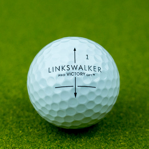 LinksWalker patented golf ball featuring OPT allows you to visually line up the direction of the putt and square up your putter face.