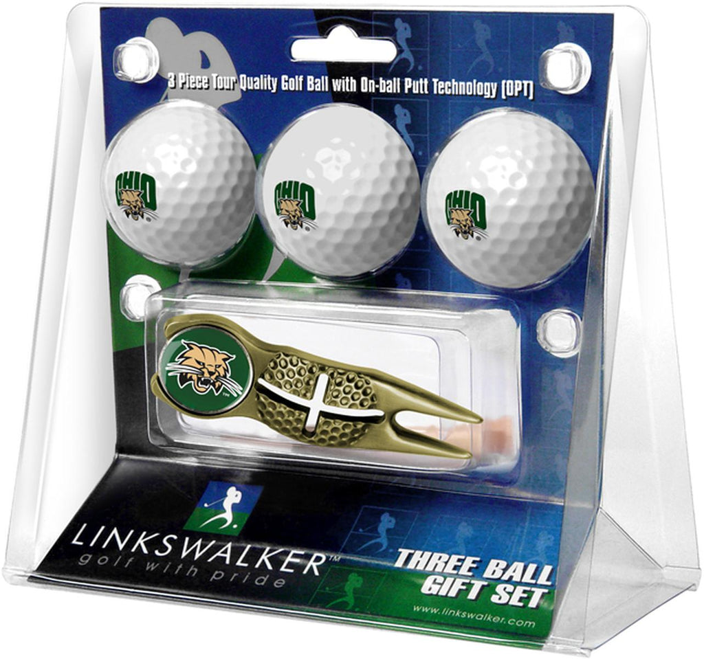 Ohio University Bobcats Gold Crosshair Divot Tool 3 Ball Gift Pack