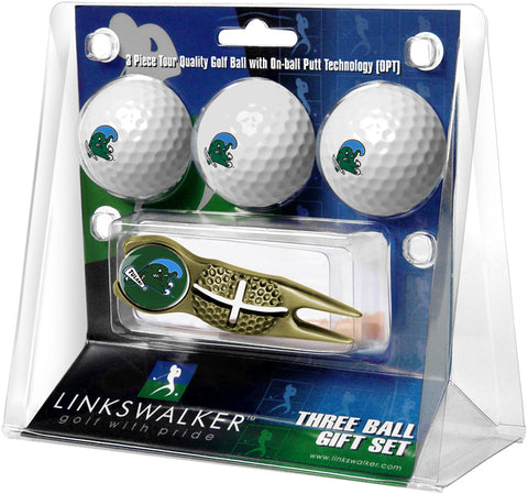 Tulane University Green Wave Gold Crosshair Divot Tool 3 Ball Gift Pack - Gold